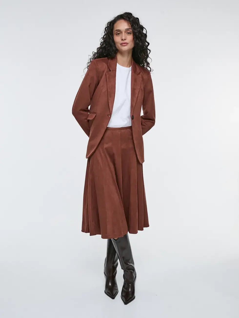 Cinnamon Suede Effect Stitch Details Midi Skirt